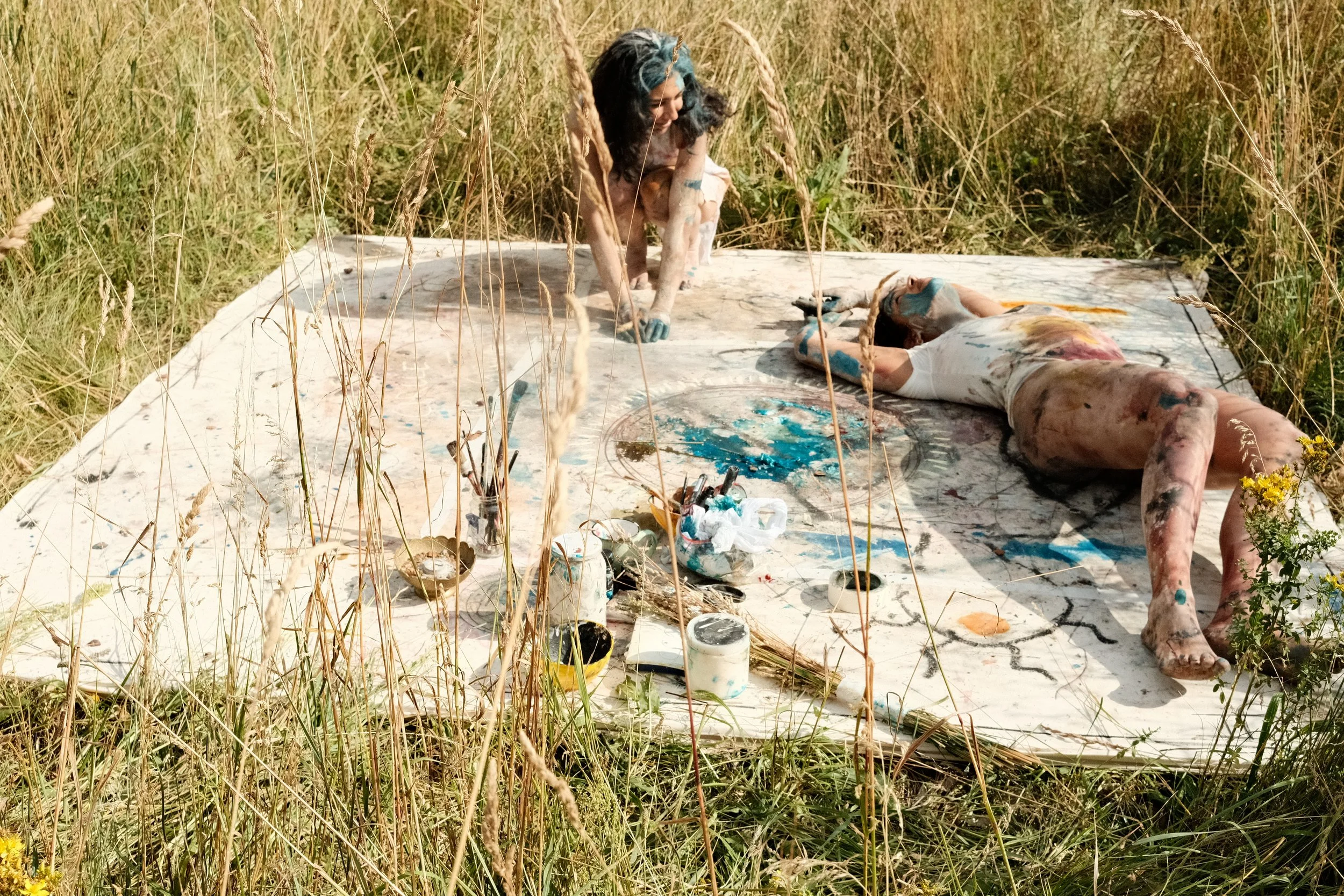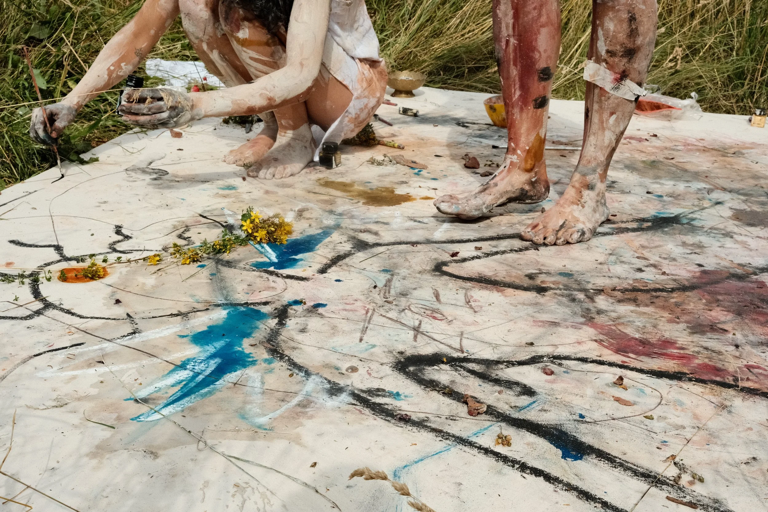 A study on Something always happens when two people meet. Human relationships are processes of mutual influence where boundaries blur. Just as pigments alter their hue when blended, individuals adapt and shift in response to others. This artistic research project stages this dynamic through performance.